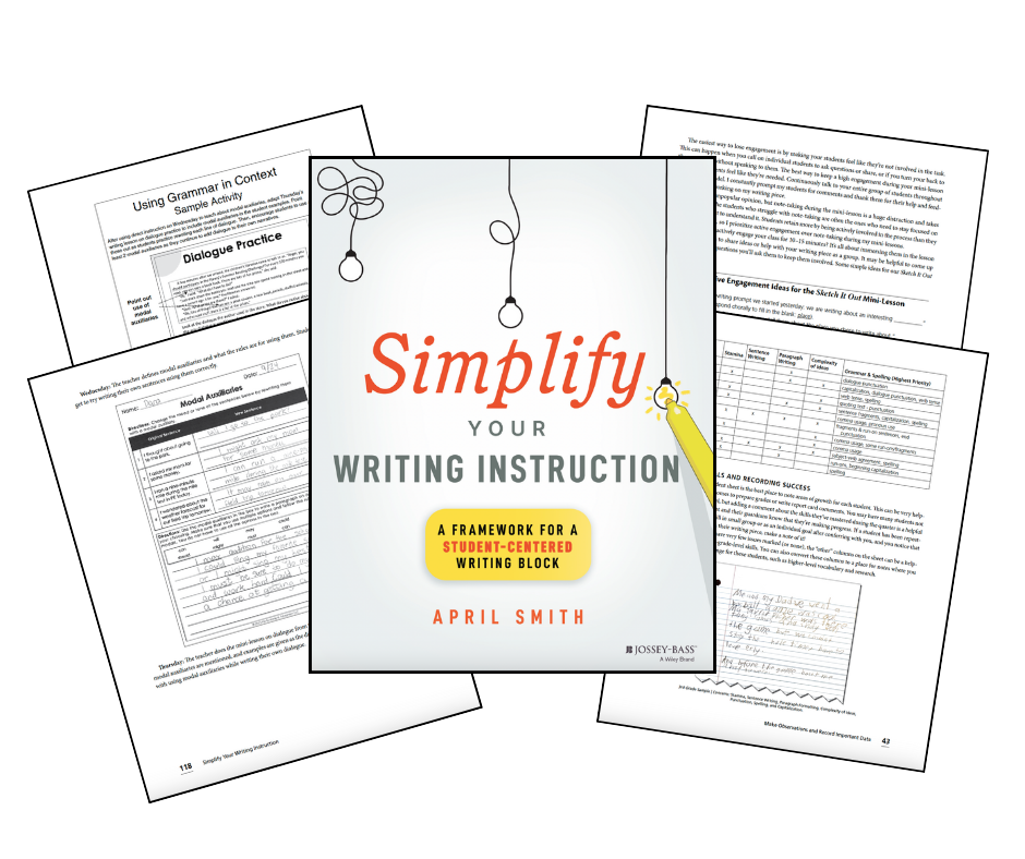 âI cannot think of a better title for this book because Simplify Your Writing Instruction is the roadmap to do just that! April has thought of everything. This book is grounded in research, and it goes beyond the âwhyâ and digs into the âHOW!â Every page has spectacular insights, useful ideas, and nuggets of knowledge to help simplify writing instruction. The practical tips and FAQs provided for each section make implementing Aprilâs ideas easy. This book is a lifeline for new teachers but equally beneficial to any teacher looking to improve and simplify their writing instruction!â