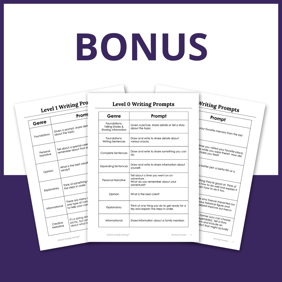 As a thank you for participating in the training, April will share a file of multiple genres and levels of writing prompts. Please look for the link on the Q&A slide.